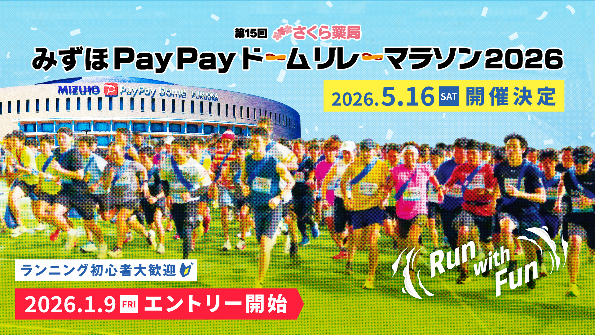 mainimg001_preslide1slide2_修正 - 特別協賛 - News RSS 2025.12.15 お知らせ第15回さくら薬局 みずほPayPayドームリレーマラソン2026開催決定!